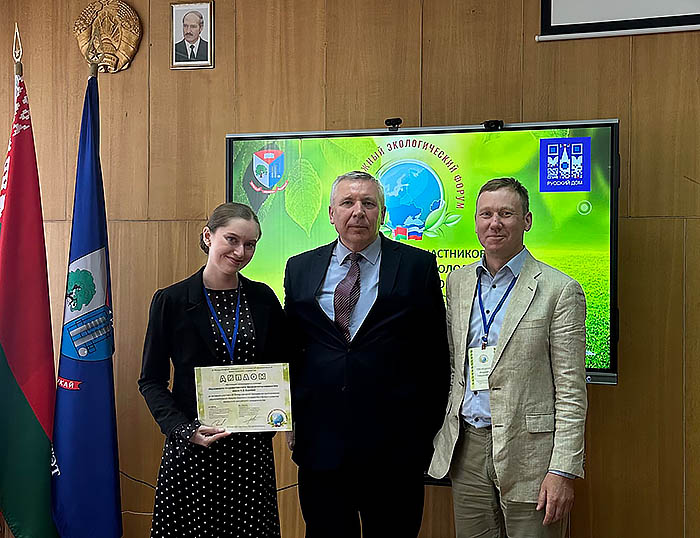 С 13 ПО 16 МАЯ ПРОХОДИТ IV МЕЖДУНАРОДНЫЙ МОЛОДЁЖНЫЙ ЭКОЛОГИЧЕСКИЙ ОБРАЗОВАТЕЛЬНЫЙ ФОРУМ СОЮЗНОГО ГОСУДАРСТВА НА БАЗЕ БЕЛОРУССКОГО ГОСУДАРСТВЕННОГО ТЕХНОЛОГИЧЕСКОГО УНИВЕРСИТЕТА. УЧАСТВУЮТ СУДЕНТКА НАШЕЙ КАФЕДРЫ АНГЕЛИНА КУБРАК И ДОЦЕНТ ГРЕЧУШКИН А.Н.