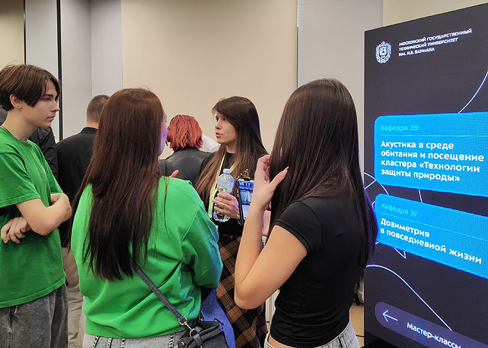 5 октября в МГТУ имени Н.Э.Баумана прошел день открытых дверей. Наша кафедра провела мастер-класс и экскурсии в лаборатории технологии очистки сточных вод и почвогрунтов и в лаборатории геоинформационных систем. На мероприятии работали Алина Калистратова, Валерия Кудренок и другие молодые сотрудники и магистры кафедры. На экскурсиях прошла демонстрация технологий очистки сточных вод и использования ГИС для прогнозирования последствий ЧС. Гостям университета также продемонстрировали работу акустической решетки и рассказали о средствах измерения и снижения шума.